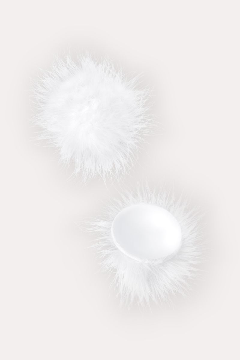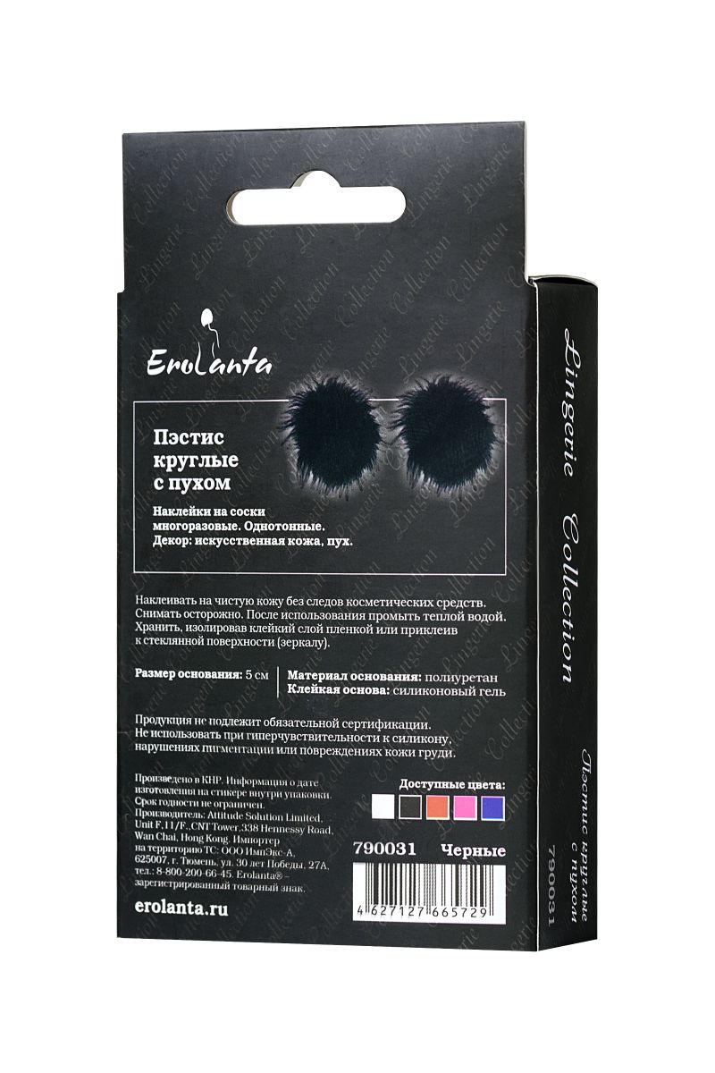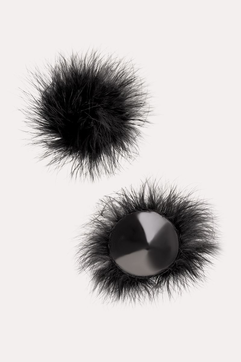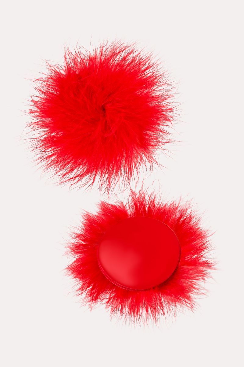 Наклейки на соски многоразовые. Однотонные. Основание выполнено из полиуретана, внутри — слой силиконового геля. Декор: искусственная кожа, пух. Размер основания - 5 см.