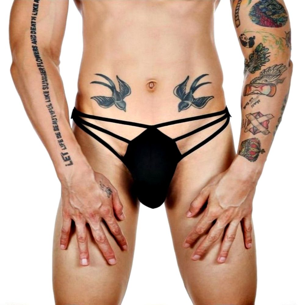 Черные сексуальные трусы-стринги на тонких бретелях.