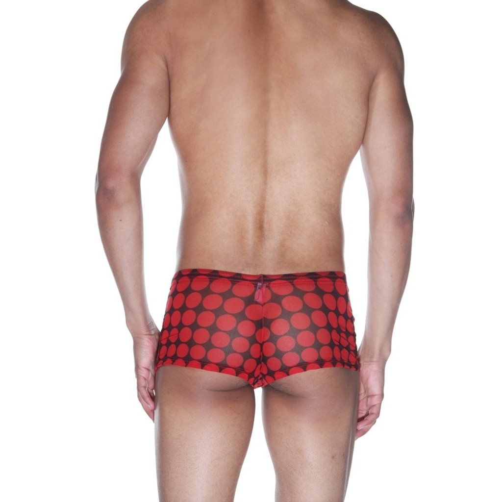 Простые, классической формы боксеры для мужчин, сшитые из полупрозрачной легкой ткани в крупный красный горох.