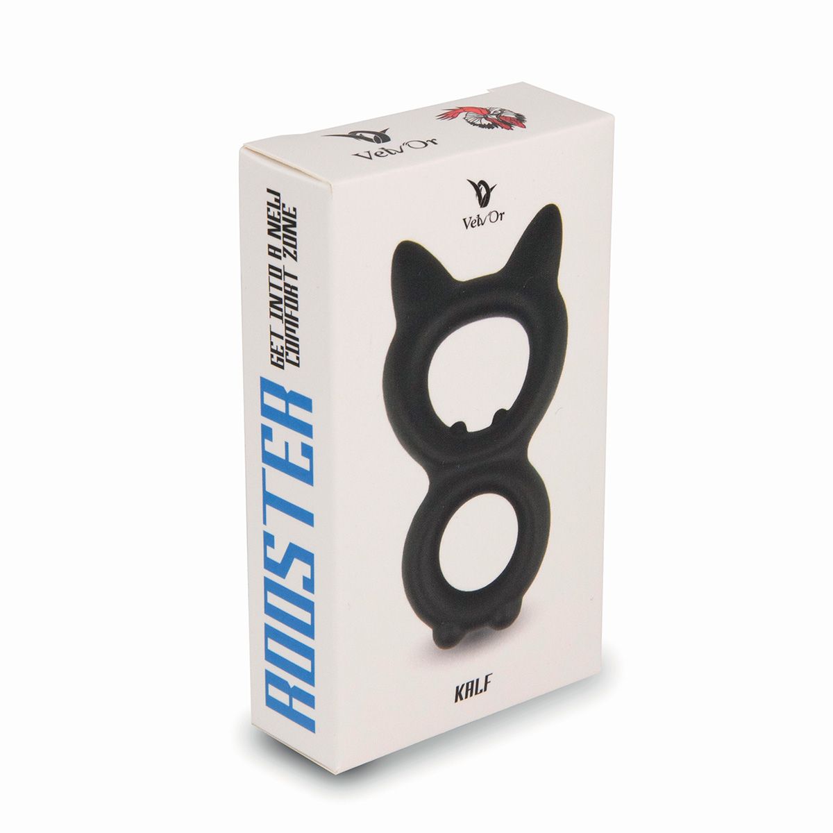 Rooster Kalf — мягкое силиконовое двойное кольцо для пениса, напоминающее по дизайну кошку. Оно сконструировано таким образом, что большое кольцо охватывает пенис и мошонку, а маленькое кольцо - основание эрегированного пениса. Вы можете носить это кольцо для члена так, чтобы маленькое кольцо было близко к телу, заставляя большое кольцо тянуть ваши яички вперед. Альтернативно, вы можете носить большое кольцо близко к телу, чтобы маленькое кольцо лучше удерживало ваш пенис. Любой способ ношения Rooster Kalf удобен и приводит к заметной эрекции. Внутренние диаметры - 2 и 2,5 см. Внешние диаметры - 3,9 и 4,8 см.