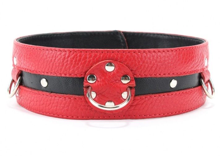 Черно-красный кожаный ошейник увеличенного размера.