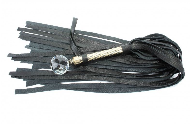 Эксклюзивная плеть с металлической ручкой. На конце ручки - крупный прозрачный кристалл.