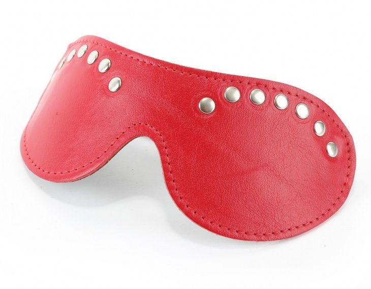 Красная маска из кожзама, декорированная заклепками. Крепится к голове при помощи удобной резинки. Длина маски - 19,5 см., ширина - 7 см.
