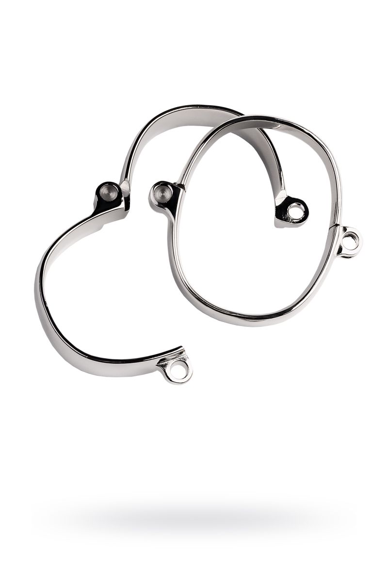 Металлические наручники - строгий девайс для ограничения свободы. Эта модель фиксирует запястья близко друг к другу и закрывается на замок, ключ от которого хранится у Господина или Госпожи. Размеры браслетов - 5 х 7 см.